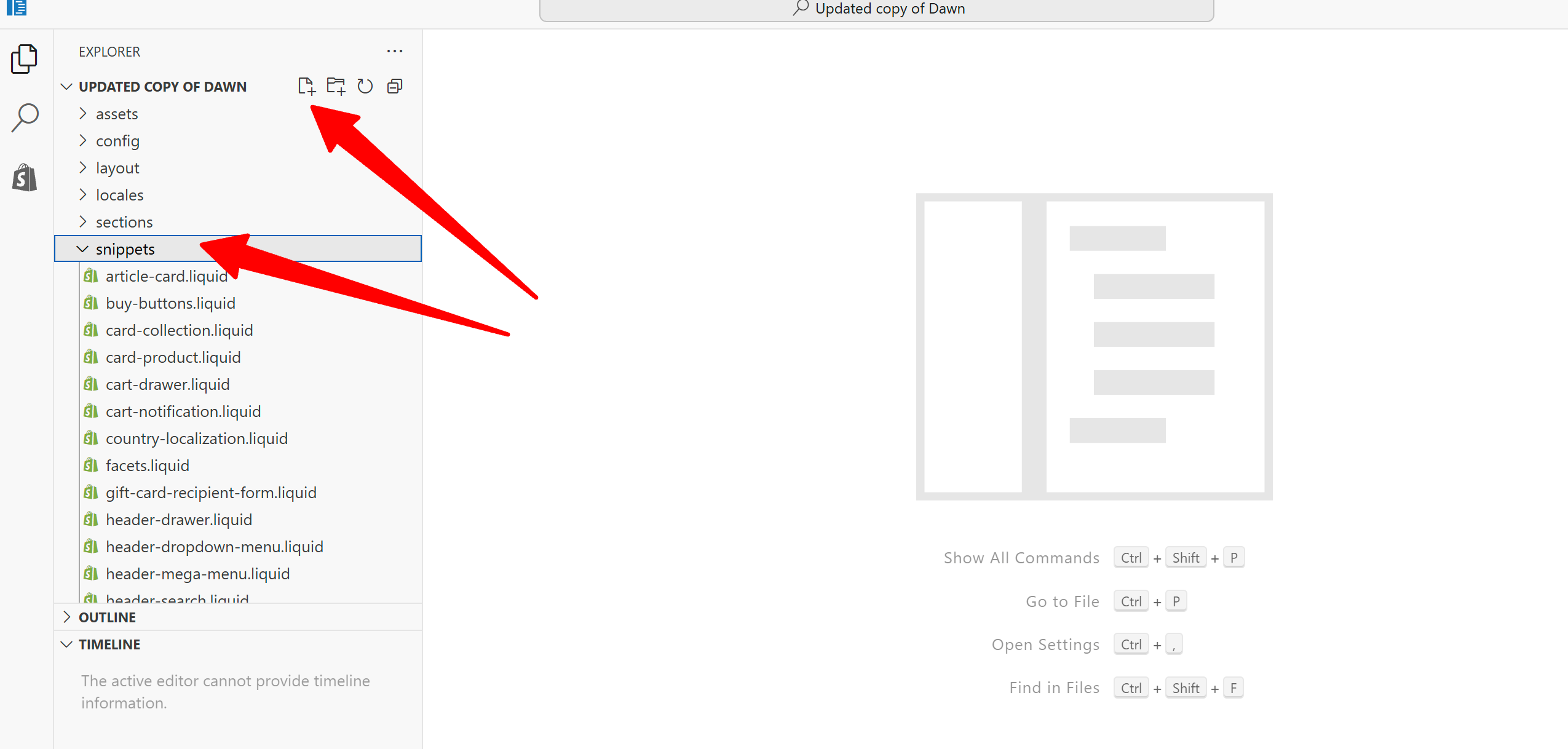 2. In the theme editor, under the snippets folder, click Add new file
